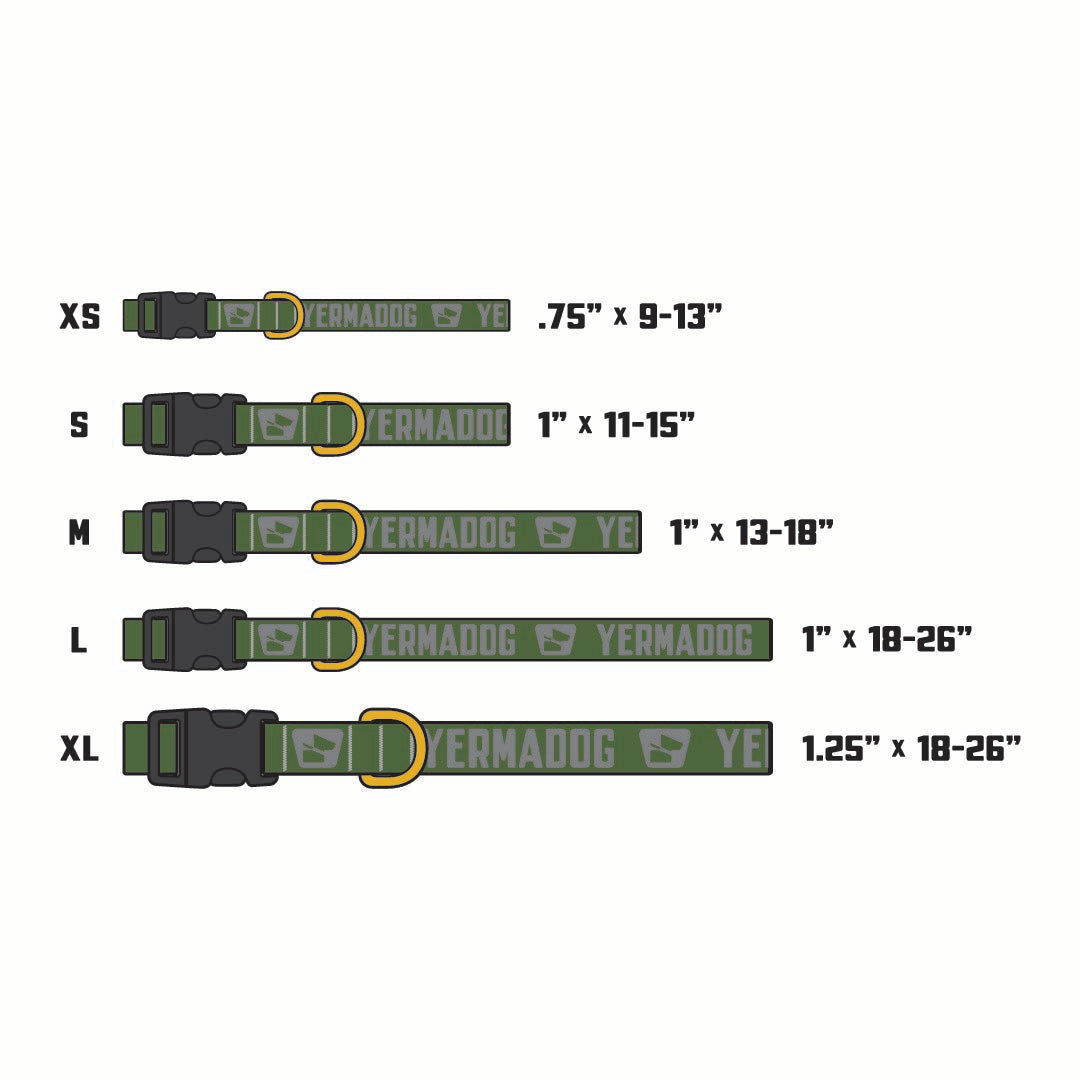 Owners • Being an adjustable collar, please measure yer dog's old collar length for sizing. Any of the sizes can be adjusted smaller than stated if needed, but we suggest making sure there is plenty of room to go larger as well. Final snugness should allow for at least two fingers to fit under the collar.