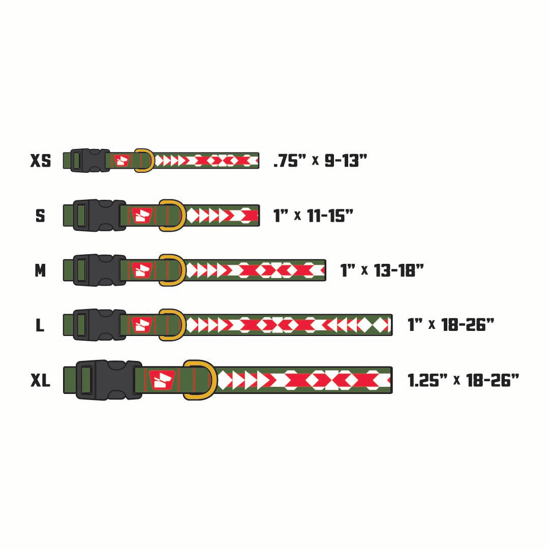 Please measure yer dog's current collar length in inches, as shown below. Enter the length in inches and select the corresponding size. We will make a custom fit based on this length. Custom items are non-returnable.