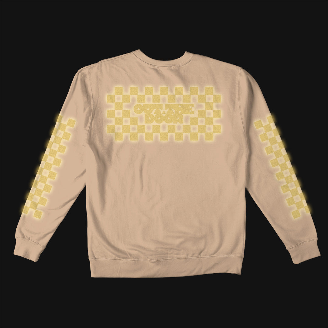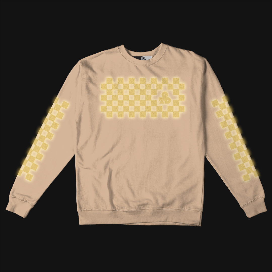 Reflective Crew Neck Sweatshirt • Classic Checkers - Gold on Sandstone