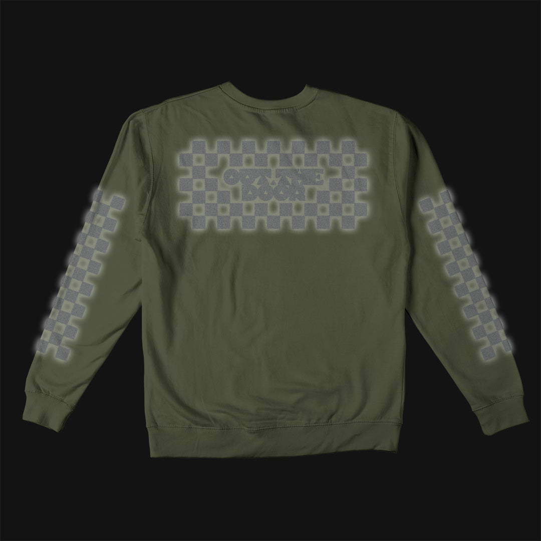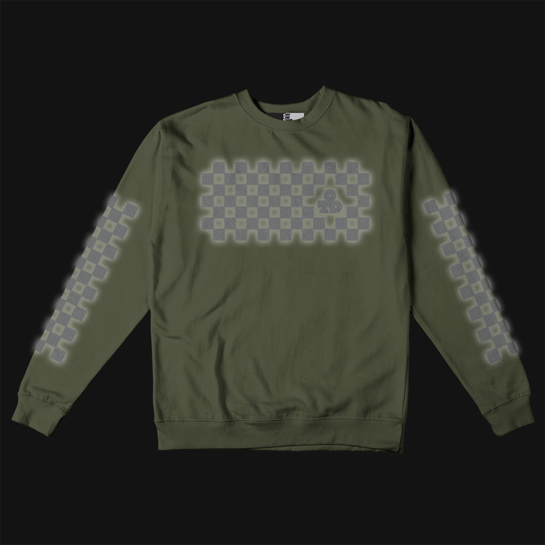 Reflective Crew Neck Sweatshirt • Classic Checkers - Silver on Army Green