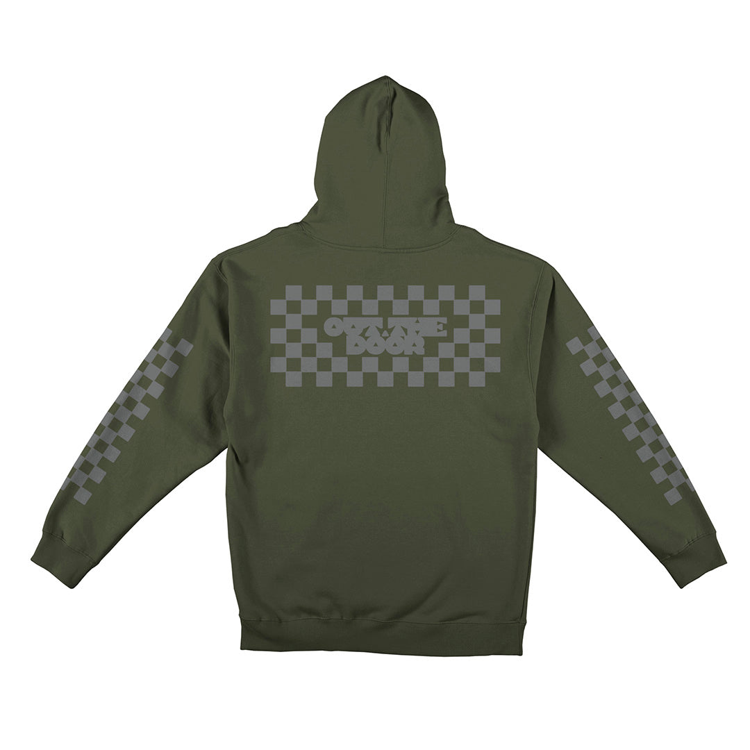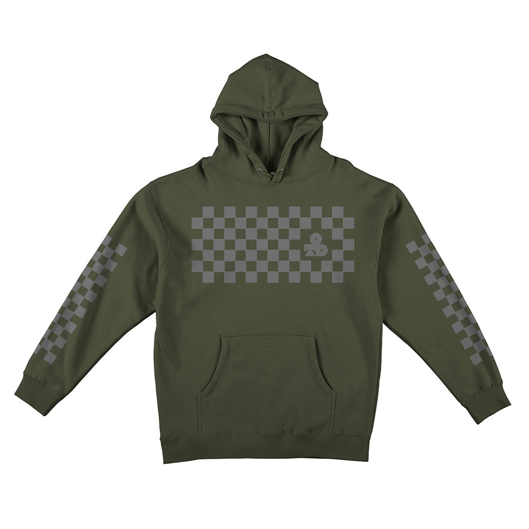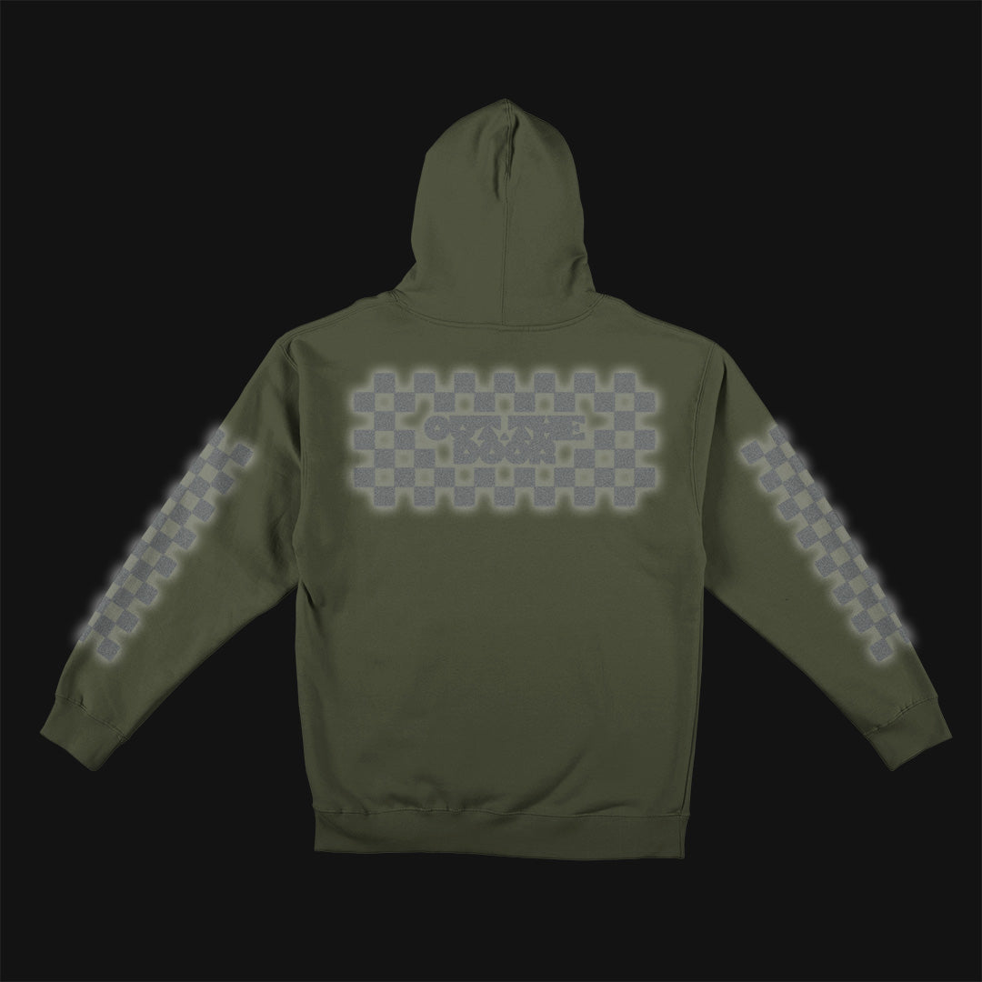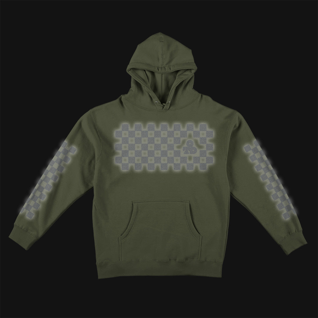 Reflective Hoodie Sweatshirt • Classic Checkers - Silver on Army Green