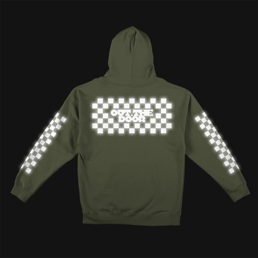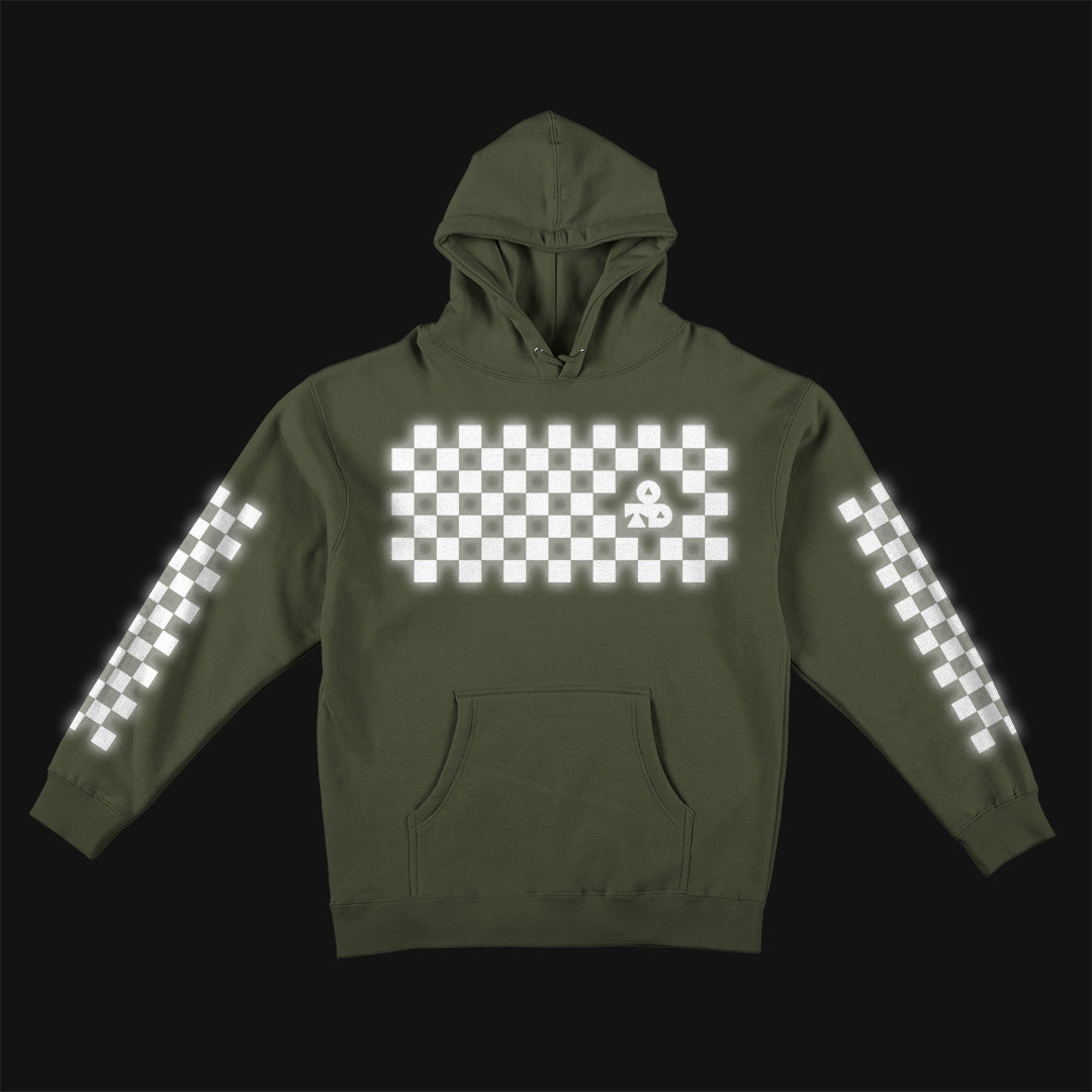 Reflective Hoodie Sweatshirt • Classic Checkers - White on Army Green
