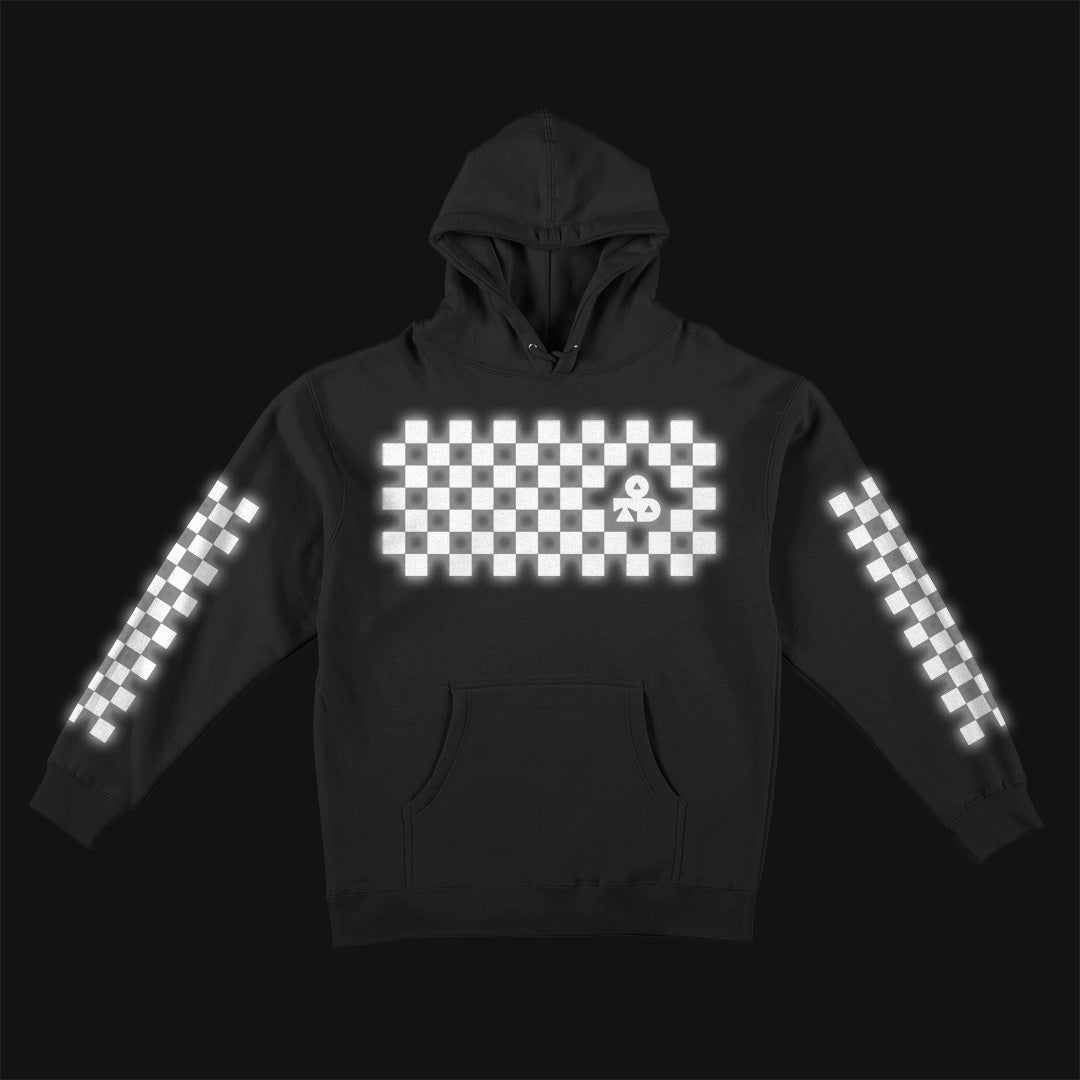 Reflective Hoodie Sweatshirt • Classic Checkers - White on Black