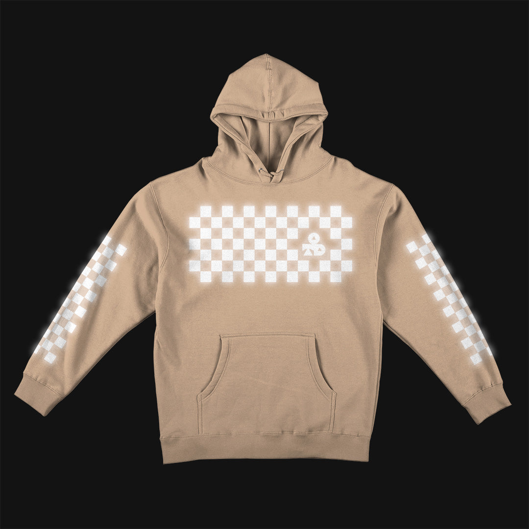 Reflective Hoodie Sweatshirt • Classic Checkers - White on Sandstone