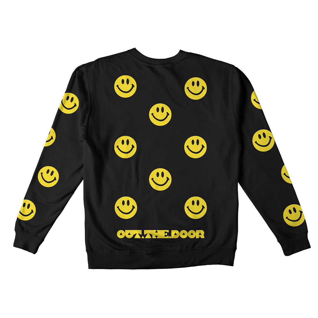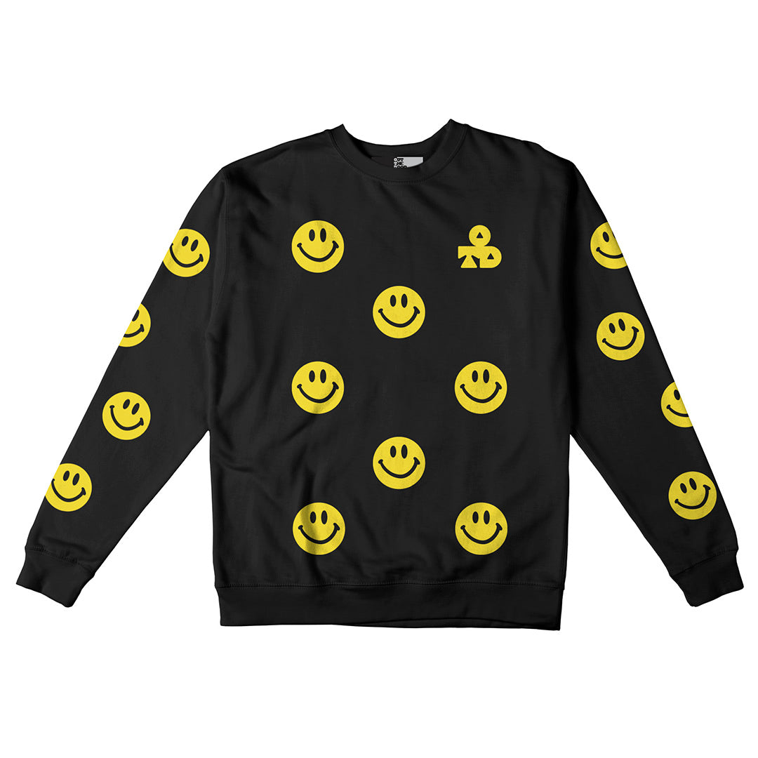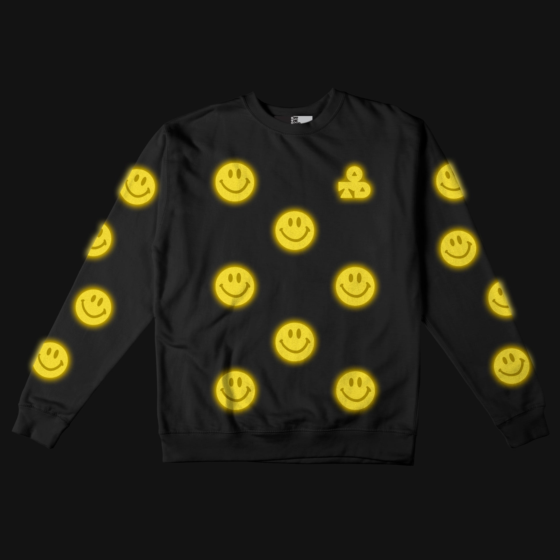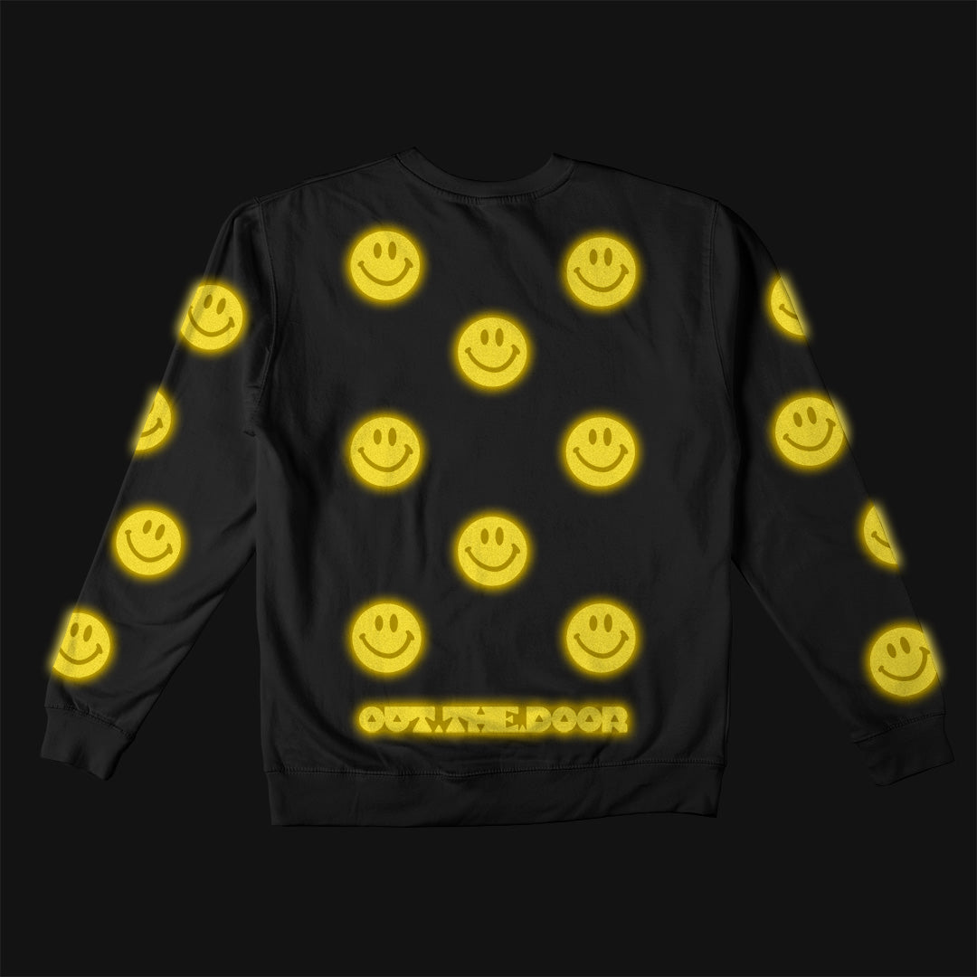 Reflective Crew Neck Sweatshirt • Super Smilies - Yellow on Black