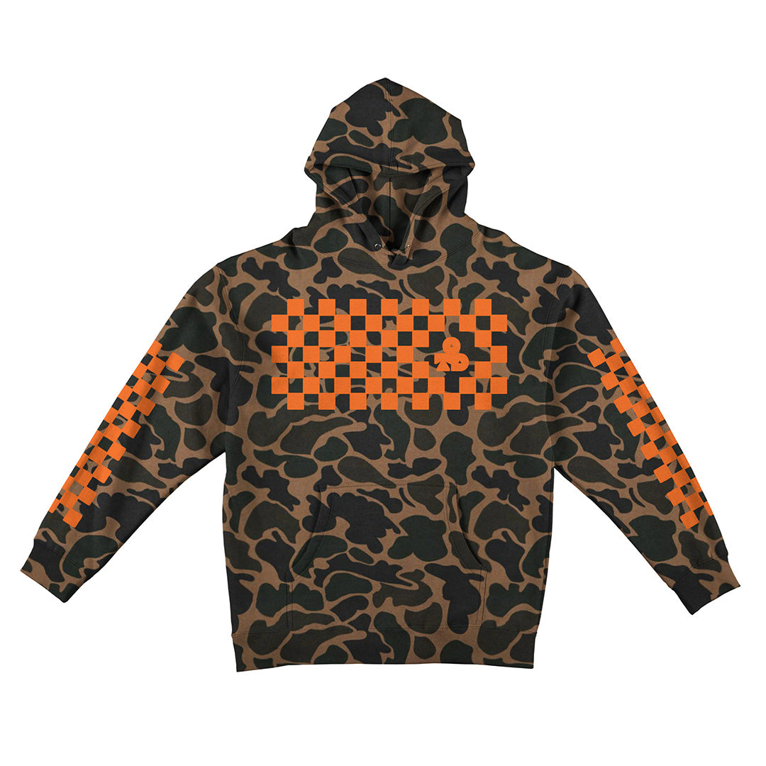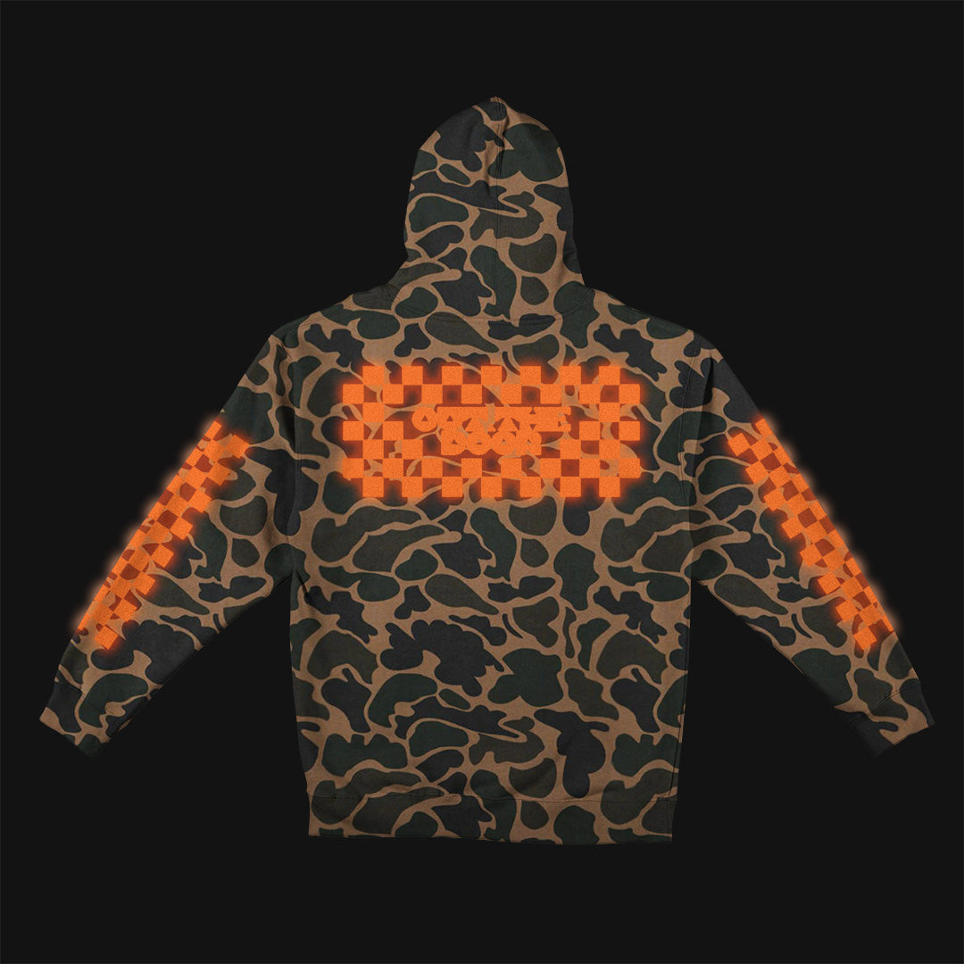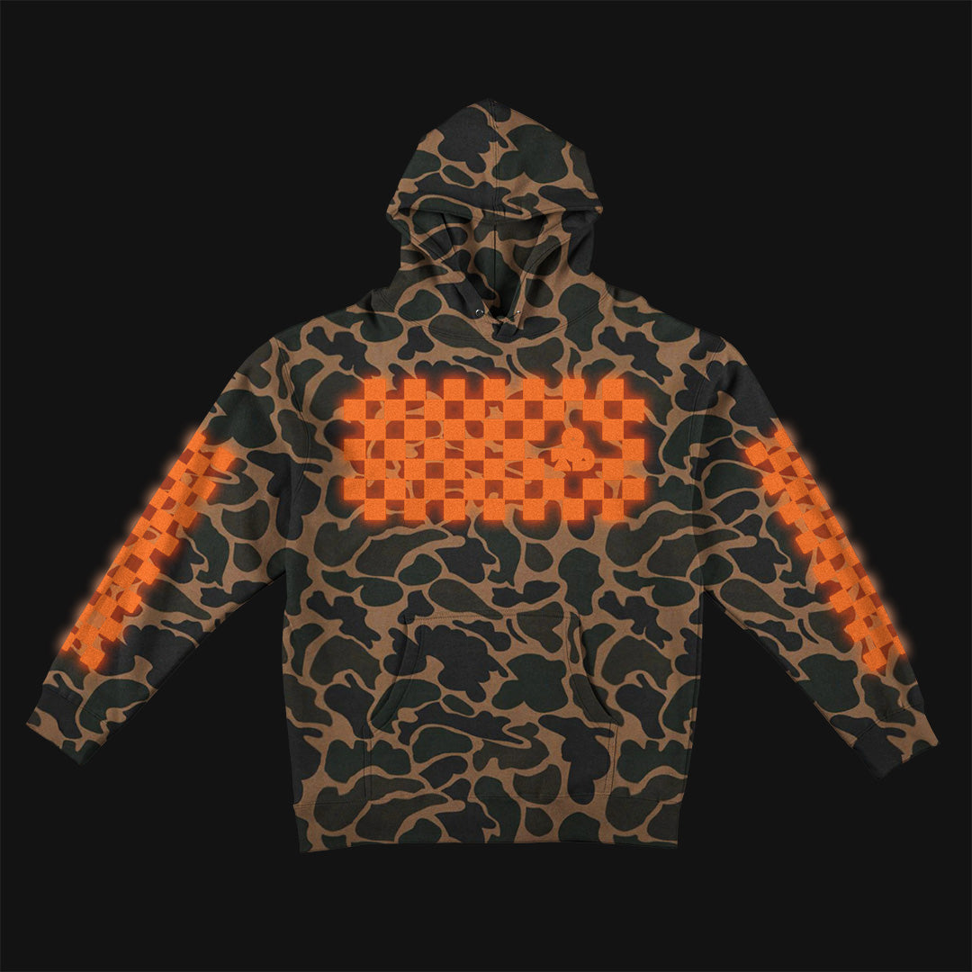 Reflective Hoodie Sweatshirt • Classic Checkers - Safety Orange on Duck Camo